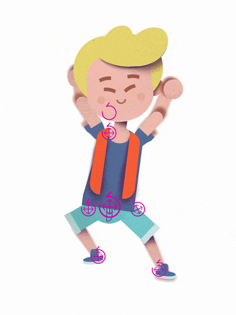 El material de trabajo como personajes, overlays y assets en general fueron proporcionados y realizados por Andrés Calderón y su equipo en el Taller Audiovisual.
