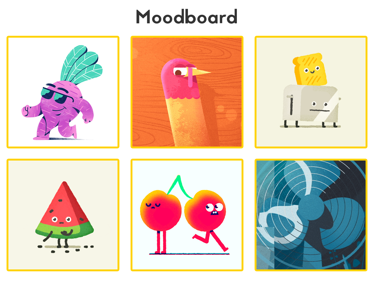 El trabajo de artistas como Jonas Mosesson, Tony babel y estudios de motion como Cub studio y Muti me sirvieron de referencia para explorar formas, detalles y el acabado final de diseño e ilustración.