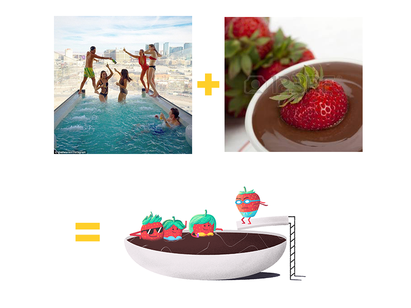 Gracias al juego de palabras que pudo emplearse usando la jerga mexicana “Fresas” (término para describir personas cuya forma de vivir es o aparenta ser superficial, también conocidos como “mirreyes”), se pudo encontrar un escenario distinto e ideal para darle vida a estos objetos inanimados.