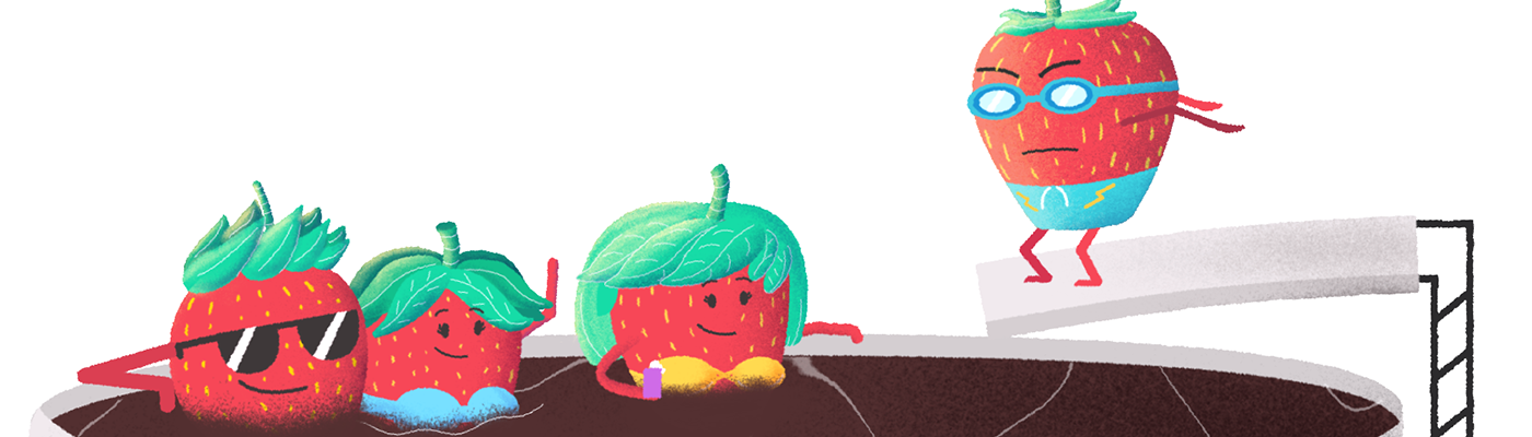El concepto de Fresas surge de la necesidad de hacer algo distinto, luego de realizar animaciones donde los protagonistas son personas cuyas acciones son sencillas, se optó por llevar a la vida objetos inanimados realizando movimientos que no vemos muy seguido en explainers.