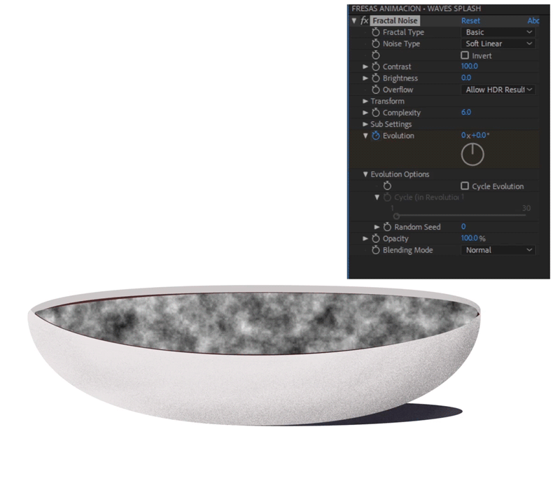 Para complementar el efecto de los líquidos se animaron unas ondas en el chocolate con shapes de manera digital.