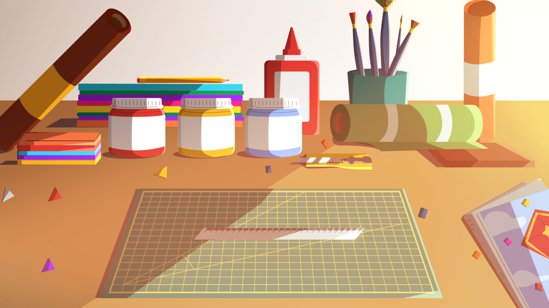 Al terminar las animaciones y un primer corte en plano, realice la postproducción agregando iluminación a la toma en general, usando layers y máscaras con modos de fusión como Soft light / Multiply además de sólidos suavizados en modo Add y Screen para luces ambientales.