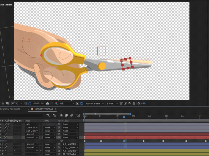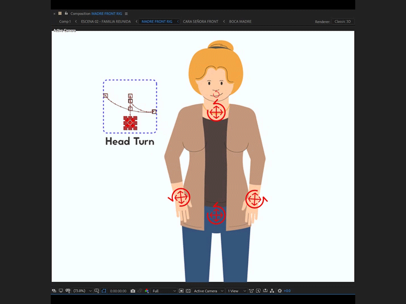 El rigging y la animación fue realizada completamente en After Effects, apoyándome con los scripts Duik y Joysticks n Sliders.